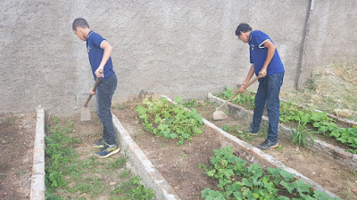 Irrigação das plantas nos canteiros; Limpeza da área, você tem o poder de plantar dentro de se coisas maravilhosas para colher amanhã! ... Plante mais, principalmente regue para poder florescer, e depois colher!!